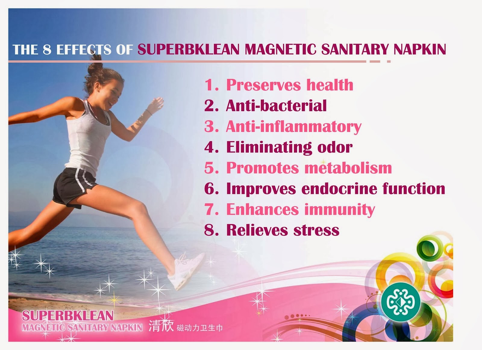 LONGRICH Magnetic, Anion & Far Infrared Superbklean Sanitary Napkin contains 8 layers of CARE.1st Layer: Premium Soft Surface - Giving you ultra comfort and stay fresh